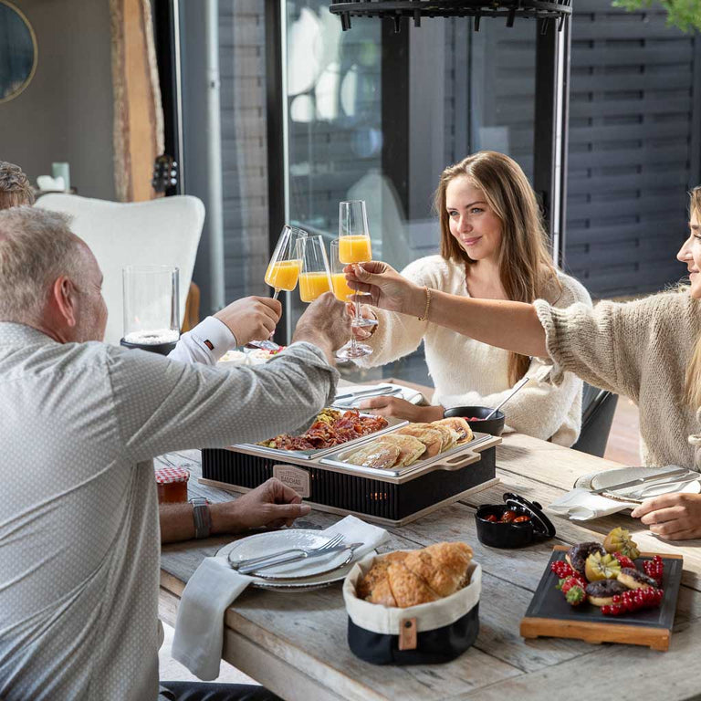 Mit unserem Hotty Chocolate wird das Dessert zum Highlight: Gemeinsam dippen, genießen und schlemmen – ganz im Hotty-Stil! Die integrierten Teelichter sorgen dafür, dass die Schokolade schmilzt und perfekt temperiert bleibt und der Tisch in wunderschönem Licht erstrahlt.