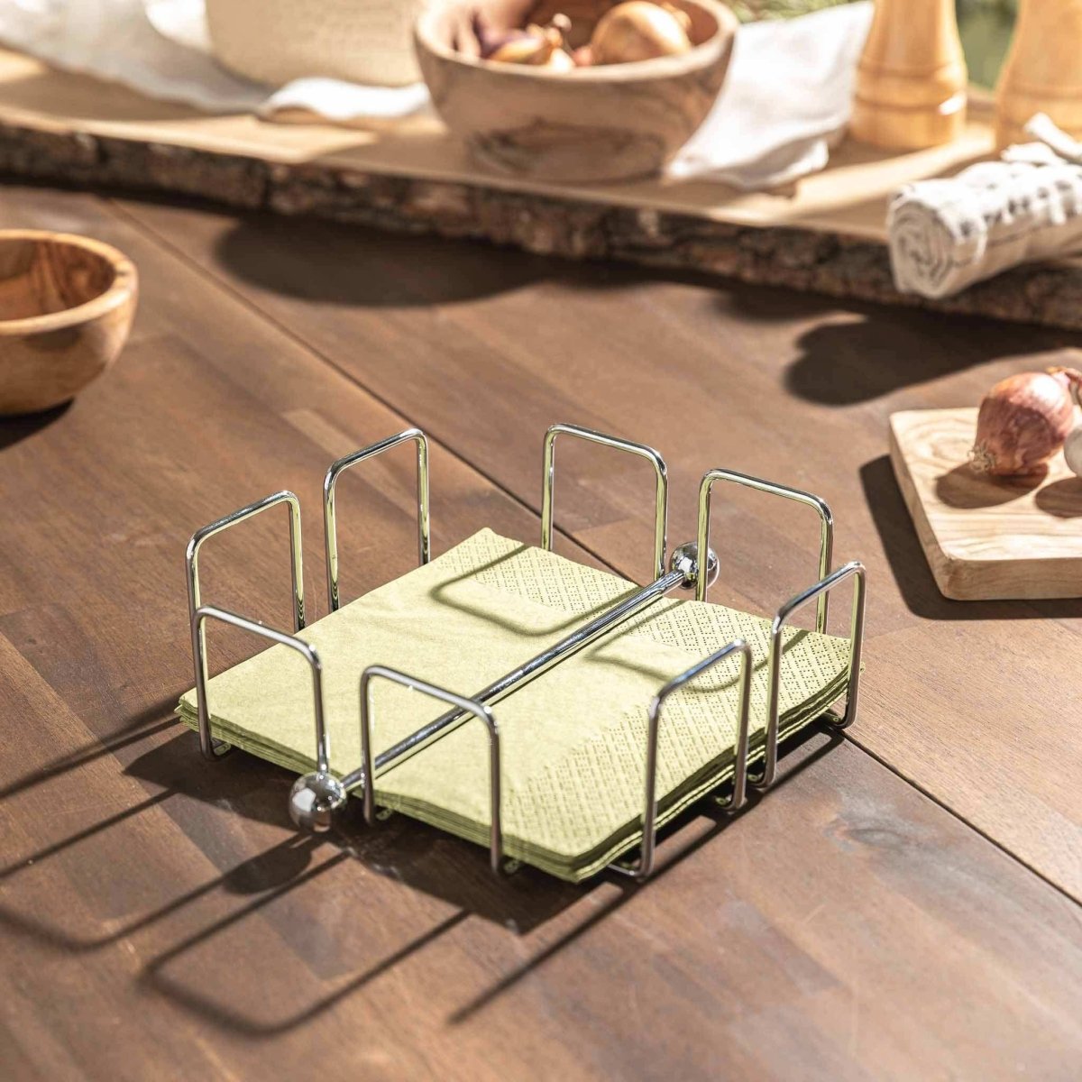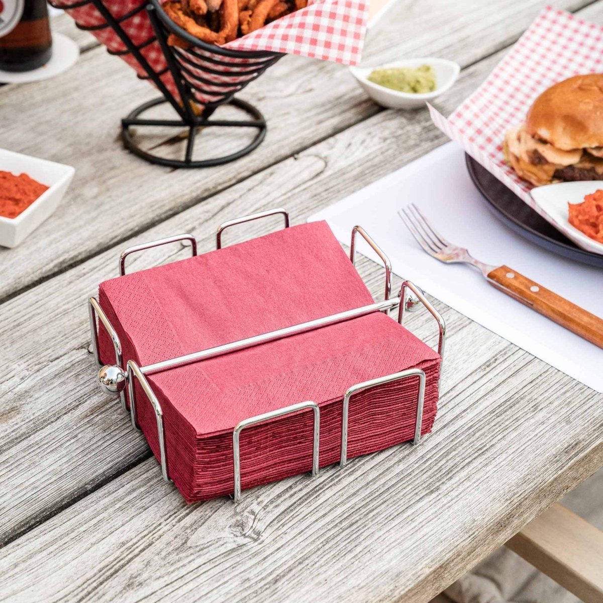 Der HOTTY Serviettenhalter aus verchromtem Draht ist schlicht, praktisch und ideal fürs BBQ-Setup.