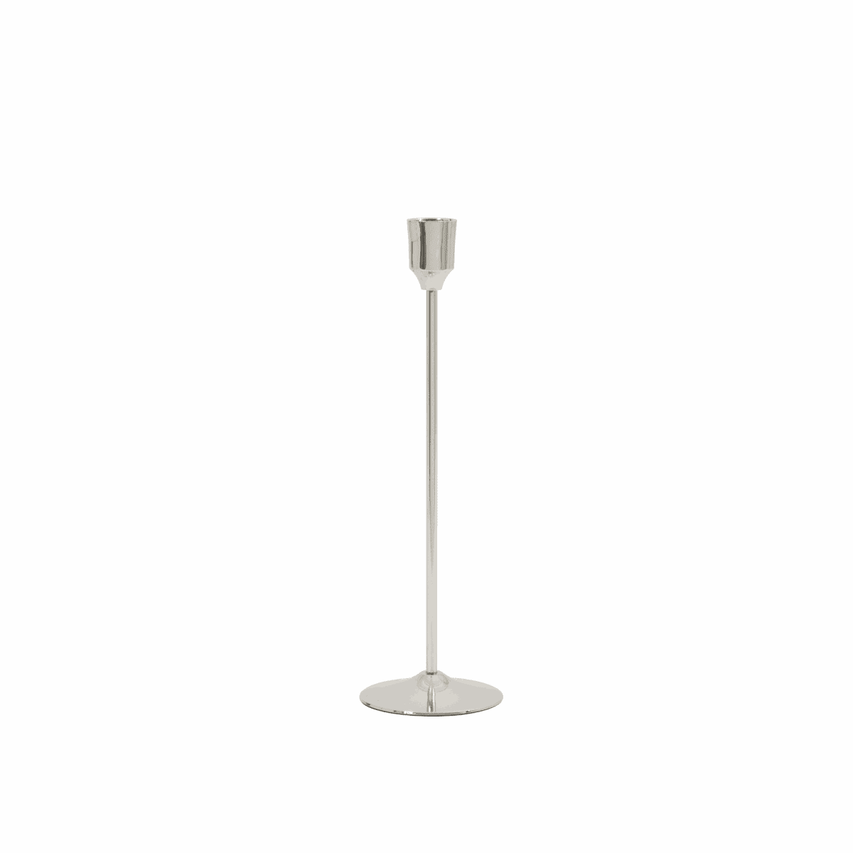 The Chrome candlestick adds a special touch to any table. Its sleek, timeless design pairs perfectly with classic white taper candles, as well as modern, twisted, or colorfully decorated candles.