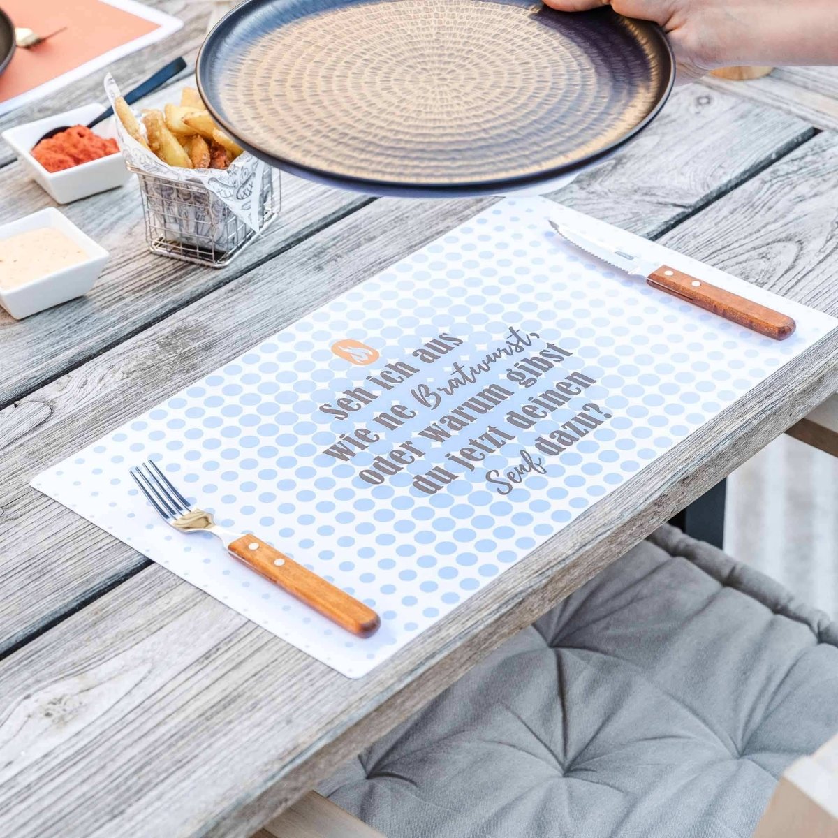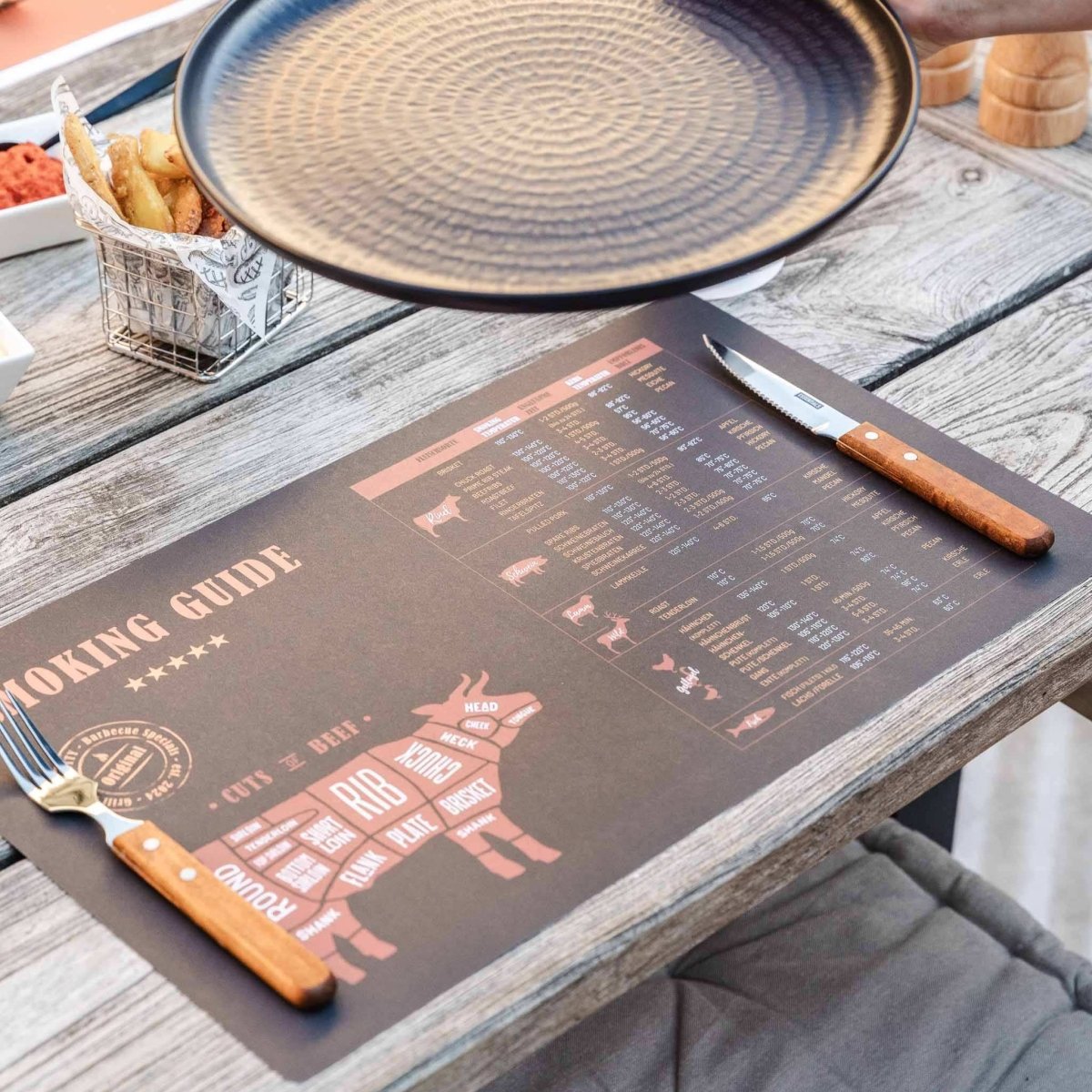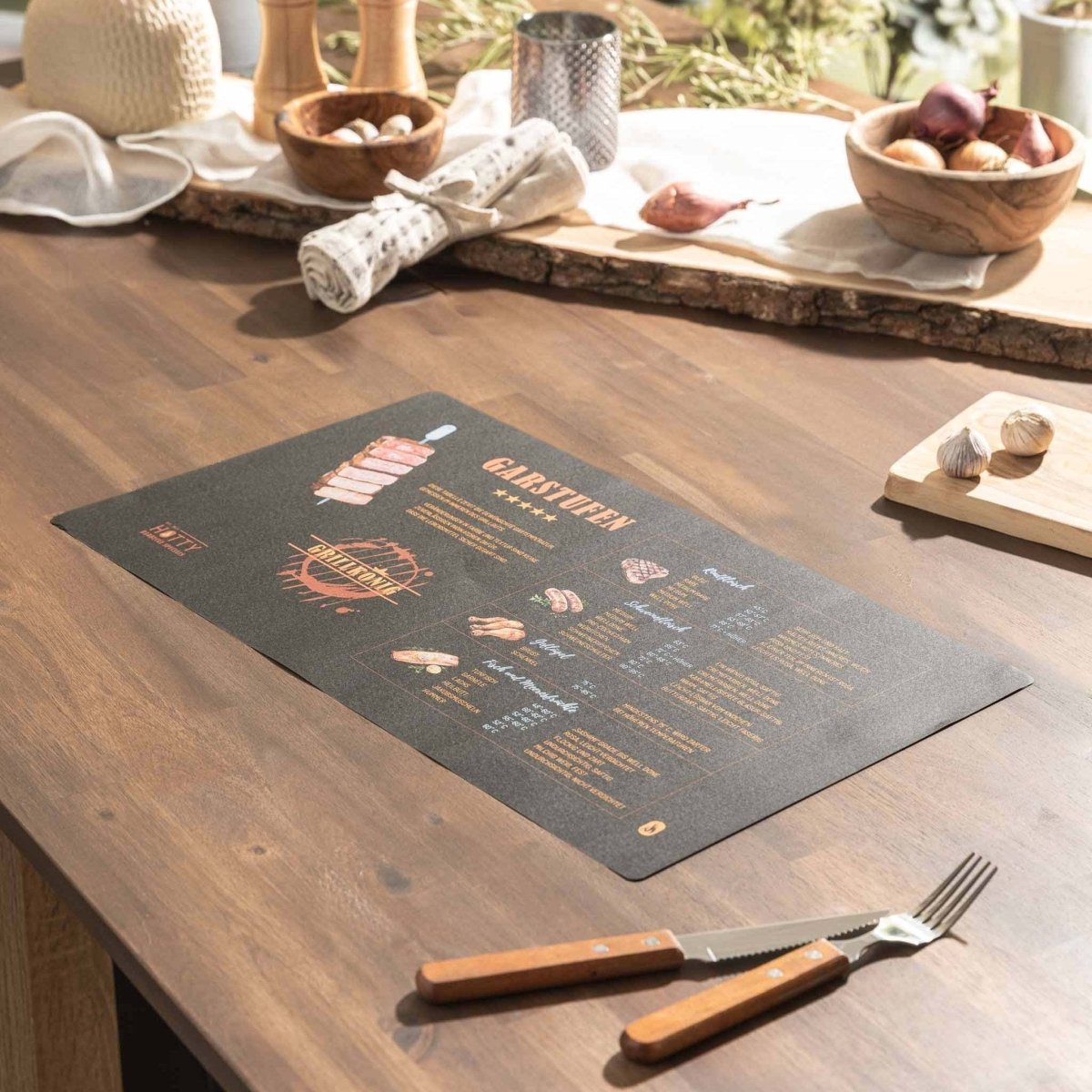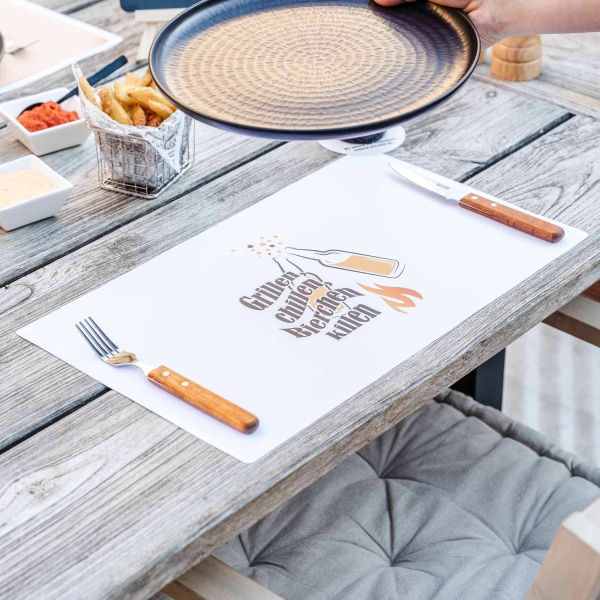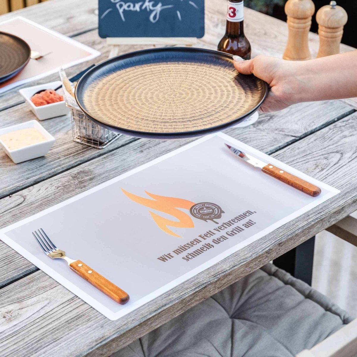 Our paper barbecue placemats are the perfect companion for your next BBQ. Whether with cool BBQ designs, witty sayings, or interesting barbecue facts – they'll add a touch of fun to the table and protect it from stains. And one thing's for sure: they'll definitely put a smile on your guests' faces.