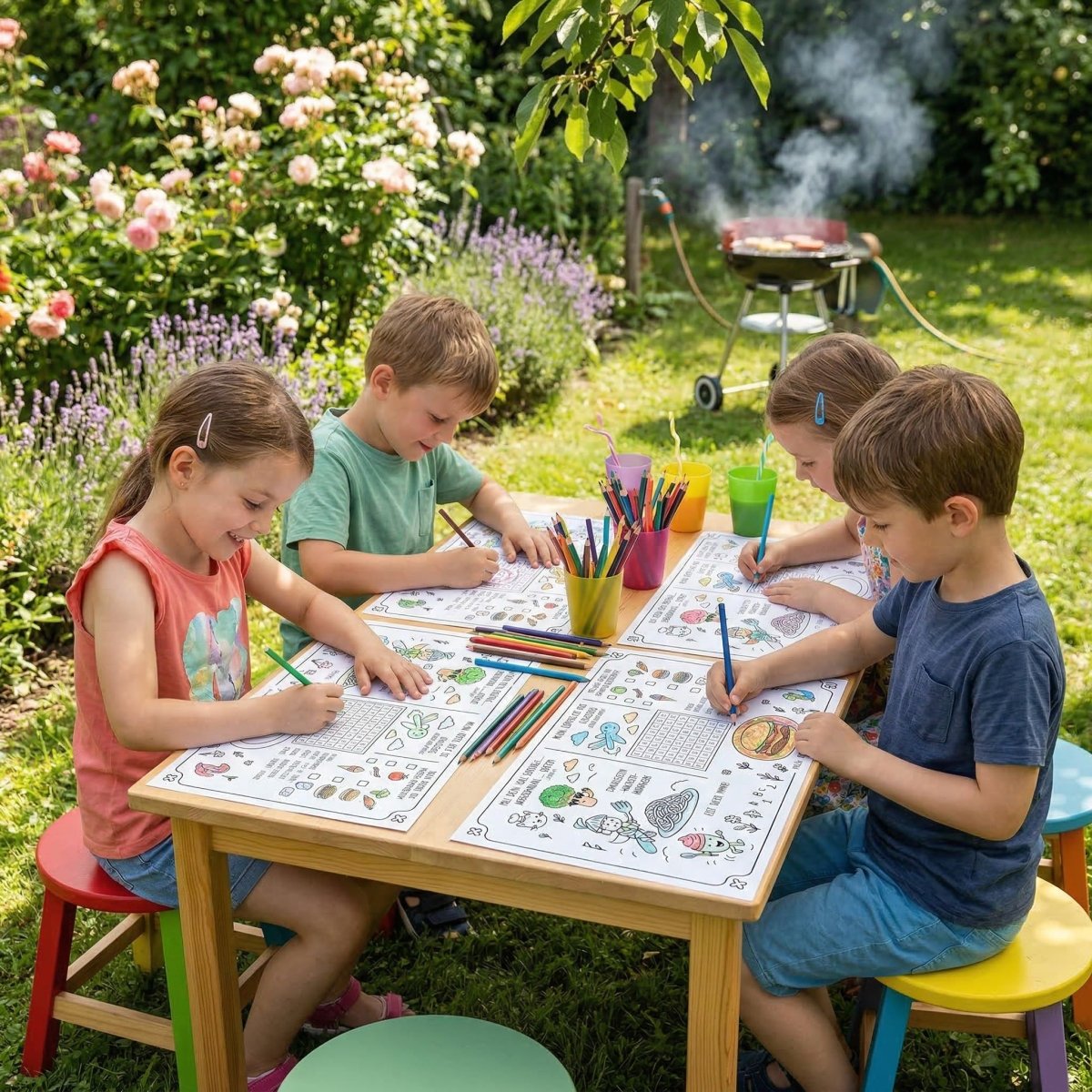 Whether it's a burger tangle or an animal mess on the plate, there's plenty for little eyes to discover. And plenty of space for little hands to color. Best of all, the kids are busy and happy, and mom and dad can grill, serve, or simply take a quick breather in peace.