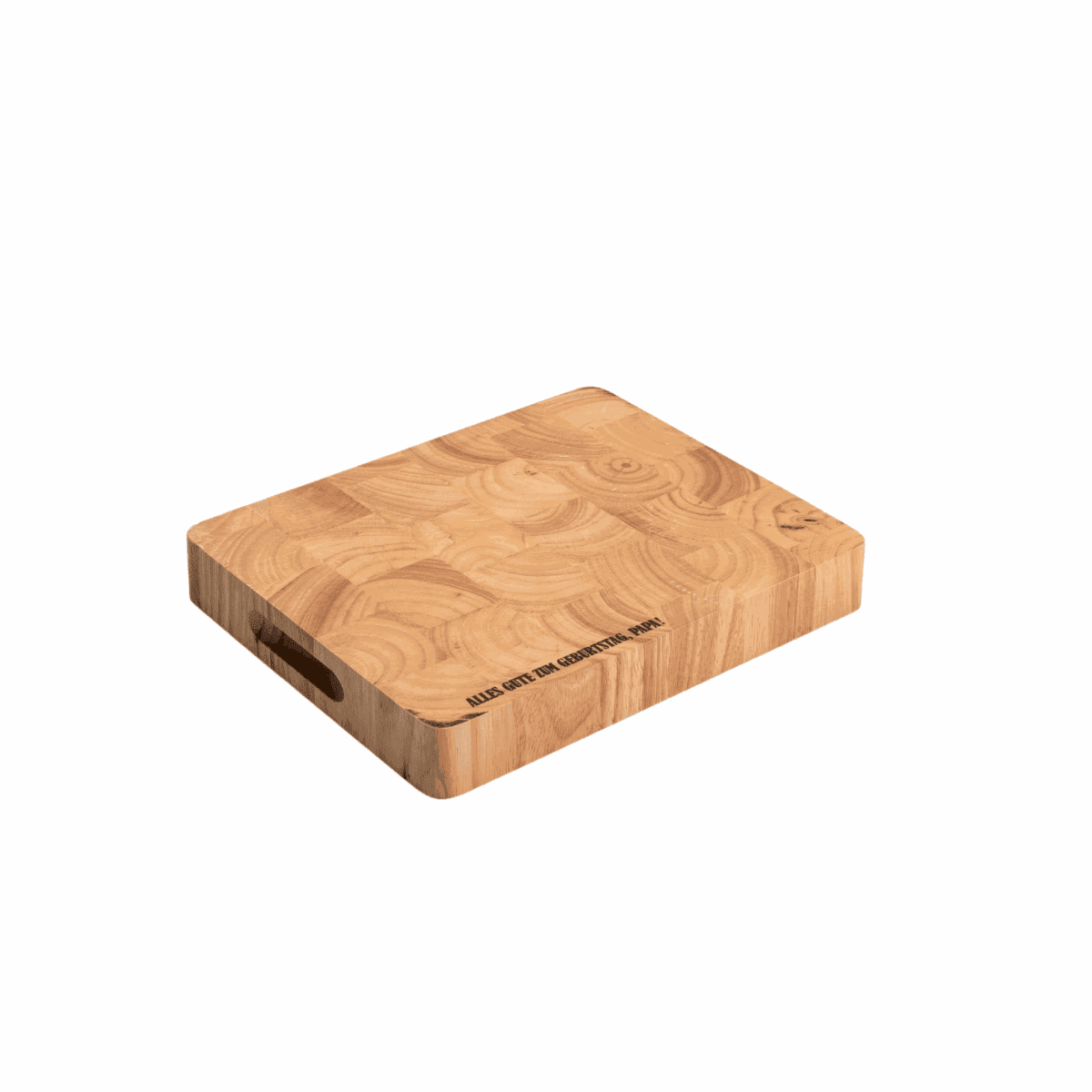 Made from sustainable rubberwood, they offer a particularly gentle surface for knives without sacrificing robustness. The wood is shock-resistant, durable, and moisture-resistant, making it perfect for use at the grill or in the kitchen. Thanks to the custom engraving, each board is truly unique!