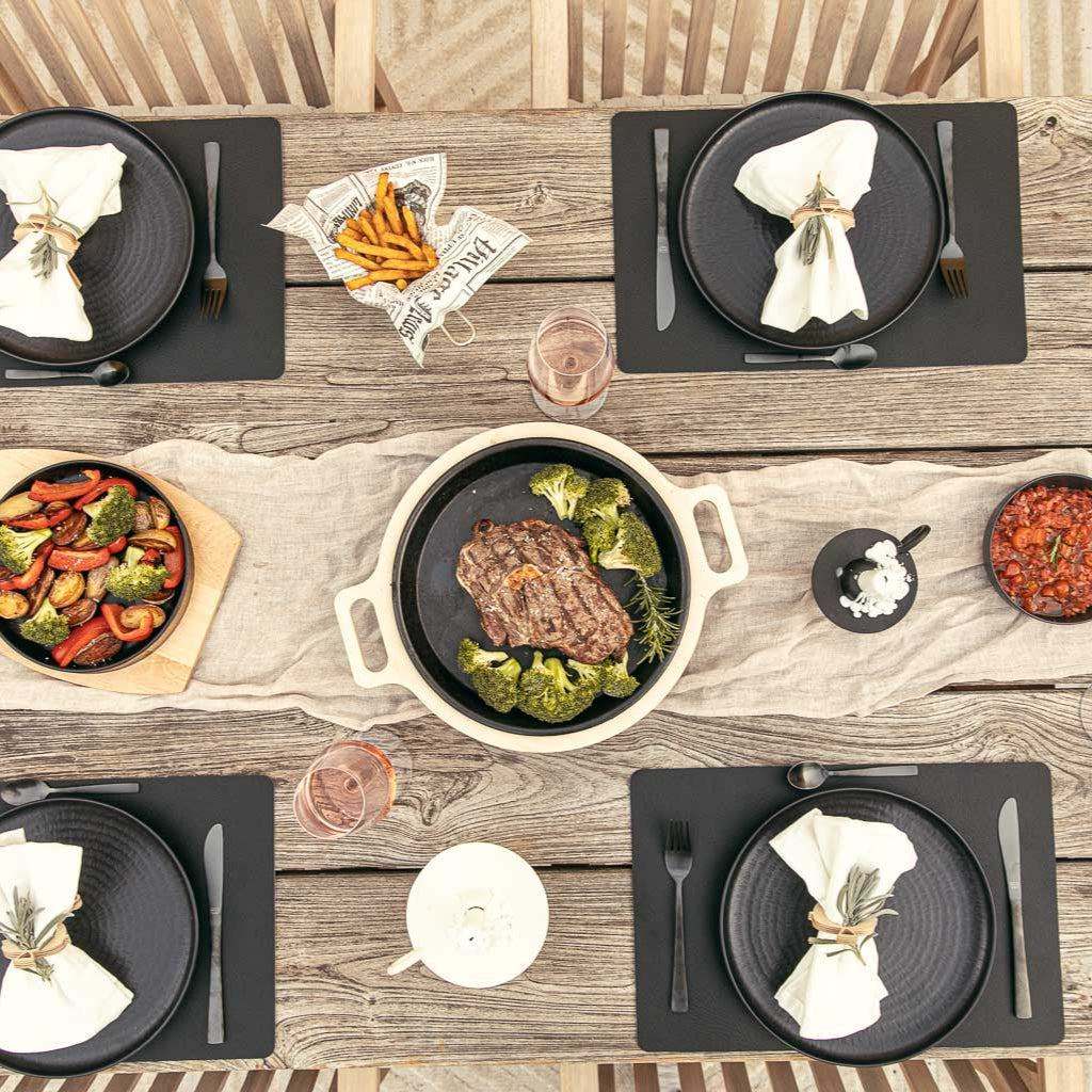 The plate fits perfectly, the cutlery is arranged neatly, the glass is held securely – and you have a place where you'll love sitting.