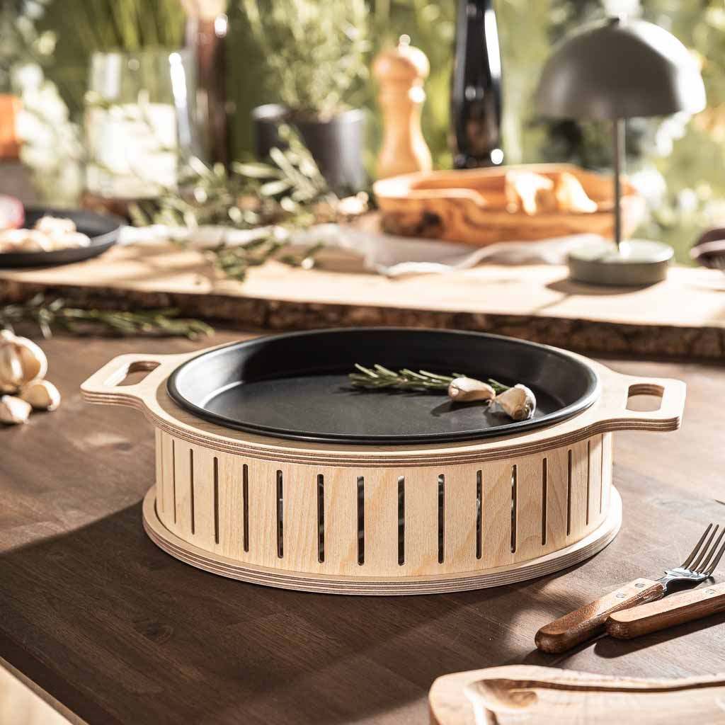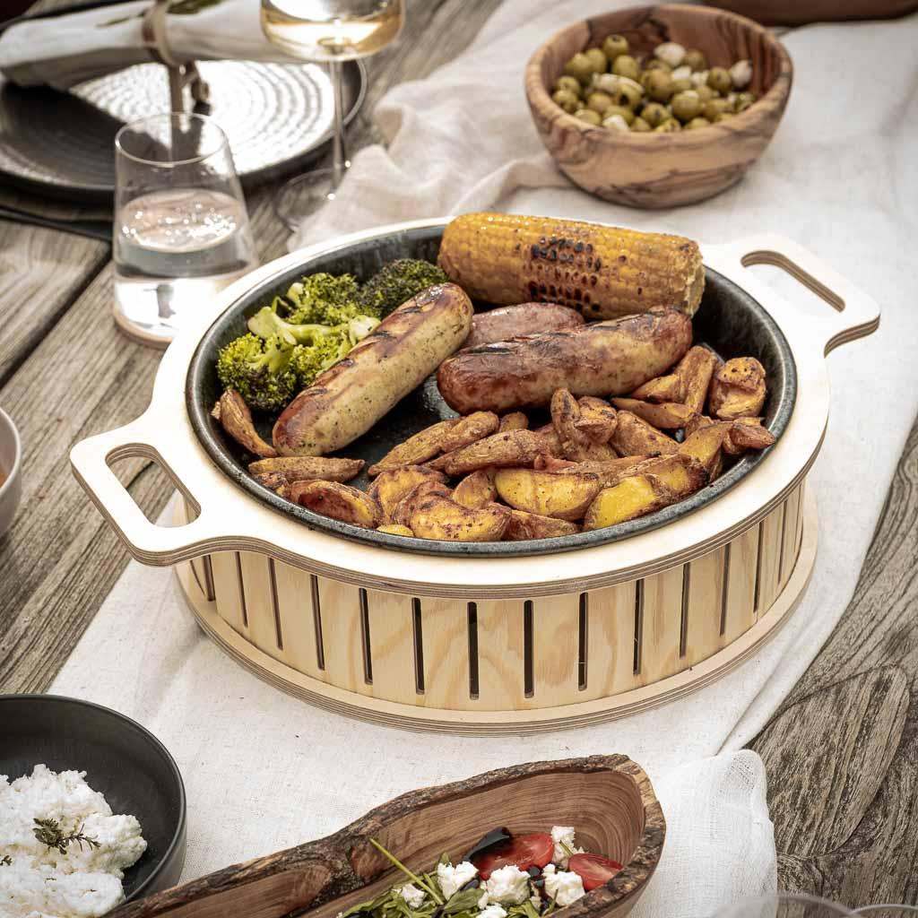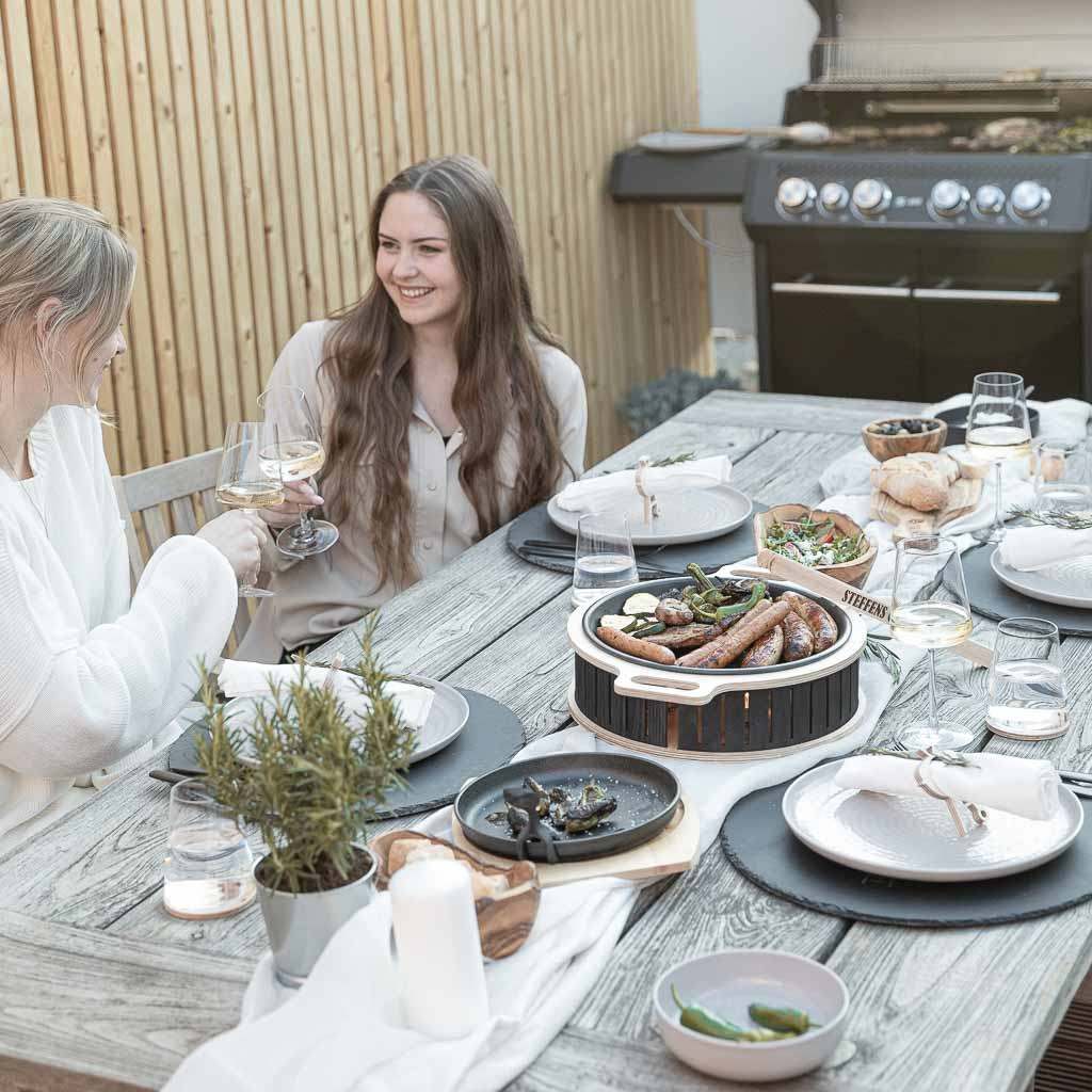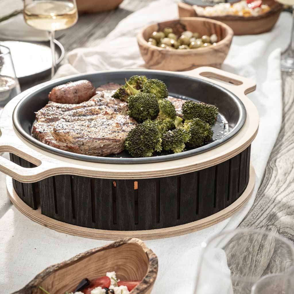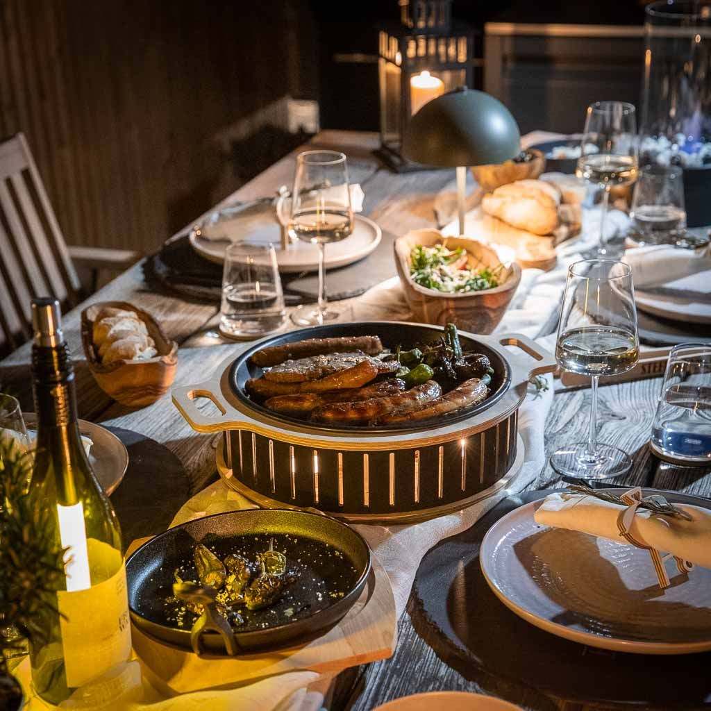 With the Hotty, you can enjoy hot meat and warm vegetables well into the evening. The later the evening, the more beautiful the candlelight.