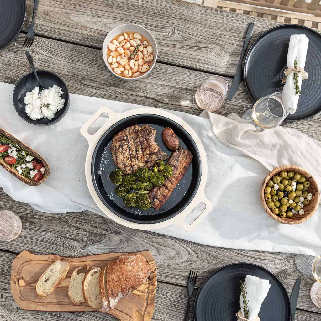 The handles make it easy to transport fresh grilled food to the table. Grilled food has never been served so stylishly.
