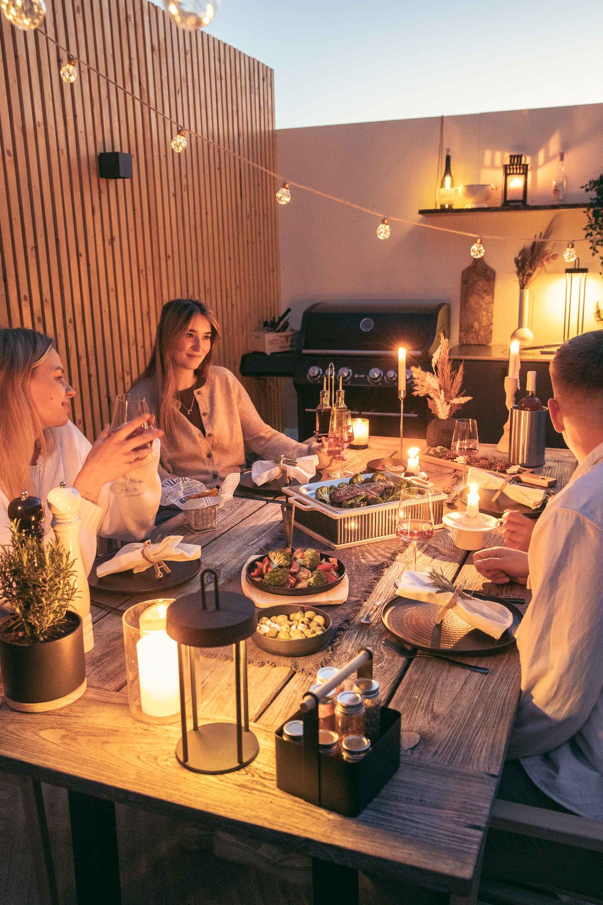 Hält Grillfleisch, Gemüse, Beilagen und mehr dauerhaft heiß am Tisch.